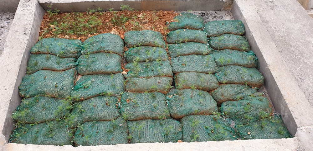 - Xếp bao tải đất và khung BTCT