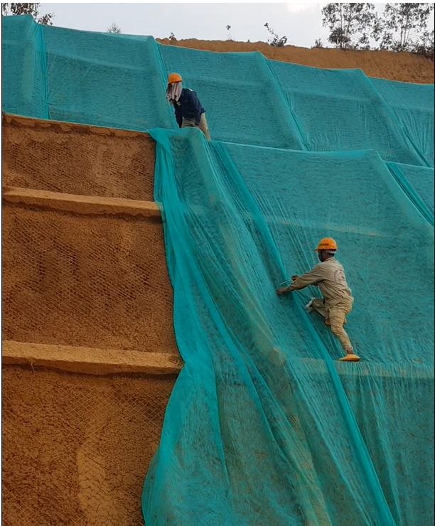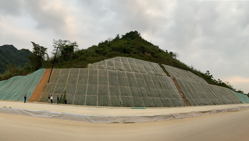 - Phủ vải địa kỹ thuật sau phun